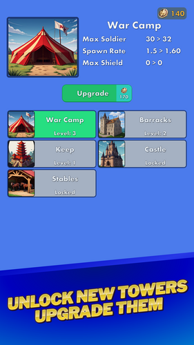 Upgrade & Defend – Upgrade your towers to build more soldiers or strengthen your towers.