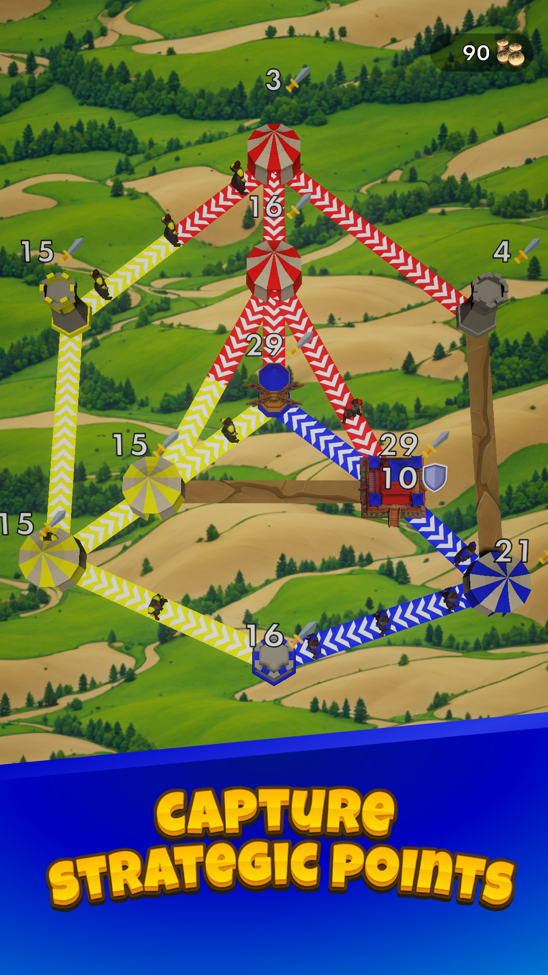- Earn Resources – Capture more Towers or Gold Mines to earn more.